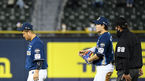 [OSEN=잠실, 지형준 기자] 18일 오후 서울 잠실야구장에서 ‘2021 신한은행 SOL KBO리그’ LG 트윈스와 NC 다이노스의 경기가 열렸다.6회말 1사에서 NC 박석민이 LG 라모스의 2루땅볼 수비 과정에서 부상을 입고 상태를 체크하고