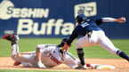 [OSEN=잠실, 지형준 기자] 19일 오후 서울 잠실야구장에서 ‘2021 신한은행 SOL KBO리그’ LG 트윈스와 NC 다이노스의 경기가 열렸다.7회말 무사 1루에서 LG 라모스가 2루타를 날리고 NC 박민우에 앞서 세이프되고 있다. /jpnews@osen.co