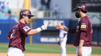[OSEN=수원, 민경훈 기자] 19일 오후 경기도 수원시 수원kt위즈파크에서 ‘2021 신한은행 SOL KBO 리그’ KT 위즈와 두산 베어스의 경기가 열렸다.3회말 무사 주자 2,3루 KT 강백호의 우익수 앞 2타점 적시타때 홈을 밟은 배정대와