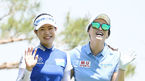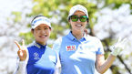 [OSEN=춘천, 곽영래 기자] 19일 강원도 춘천시 라데나CC에서 '2021 두산 매치플레이 챔피언십(총상금 8억원, 우승상금 2억원)' 1라운드가 열렸다.박민지와 홍란이 인사를 하고 있다. /youngrae@osen.co.kr