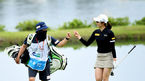 [OSEN=춘천, 곽영래 기자] 20일 강원도 춘천시 라데나CC에서 '2021 두산 매치플레이 챔피언십(총상금 8억원, 우승상금 2억원)' 2라운드가 열렸다.안송이가 버디를 잡은 뒤 캐디와 세레머니를 하고 있다. /youngrae@osen.co.kr