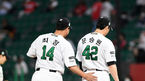[OSEN=잠실,민경훈 기자] 21일 오후 서울 잠실구장에서 2021 신한은행 SOL KBO리그 두산 베어스와 롯데 자이언츠의 경기가 열렸다.6회말을 마친 롯데 선발 프랑코가 덕아웃으로 들어가며 지시완에게 사인을 보내고 있다./ rumi@osen.co.kr
