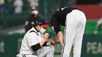 [OSEN=인천, 이대선 기자] 21일 오후 인천 SSG 랜더스필드에서 ’2021 신한은행 SOL KBO 리그' SSG 랜더스와 LG 트윈스의 경기가 열렸다.4회말 2사 1루에서 쓱 최지훈의 타구를 맞은 LG 이민호가 고통스러워하고 있다. /sunday@osen.co.kr