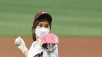 [OSEN=고척, 곽영래 기자] 21일 오후 서울 고척스카이돔에서 ‘2021 신한은행 SOL KBO 리그’ 키움 히어로즈와 NC 다이노스의 경기가 열렸다.가수 홍자가 시구를 하고 있다. /youngrae@osen.co.kr