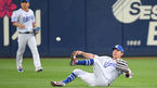 [OSEN=대구,박준형 기자] 21일 대구삼성라이온즈파크에서 ‘2021 신한은행 SOL KBO리그’ 삼성 라이온즈와 KIA 타이거즈의 경기가 진행됐다.2회초 2사 2루 KIA 김민식의 선취 1타점 적시타때 삼성 박해민 중견수가 쓰러진채 공을
