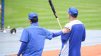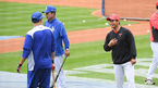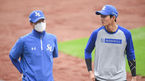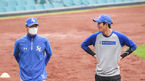 [OSEN=대구,박준형 기자] 21일 대구삼성라이온즈파크에서 ‘2021 신한은행 SOL KBO리그’ 삼성 라이온즈와 KIA 타이거즈의 경기가 진행됐다.경기에 앞서 KIA 송지만 코치가 삼성 오재일의 타격흉내에 미소 짓고 있다. / soul1014@ose