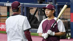 [OSEN=고척, 곽영래 기자] 21일 오후 서울 고척스카이돔에서 ‘2021 신한은행 SOL KBO 리그’ 키움 히어로즈와 NC 다이노스의 경기가 열렸다.키움 송우현이 강병식 코치와 이야기를 나누고 있다. /youngrae@osen.co.kr