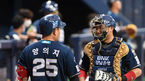 [OSEN=고척, 이대선 기자] 22일 오후 서울 고척스카이돔에서 ’2021 신한은행 SOL KBO 리그' 키움 히어로즈와 NC 다이노스의 경기가 열렸다.1회말 수비에 앞서 NC 김태군이 양의지와 이야기를 나누고 있다. /sunday@osen.co.kr