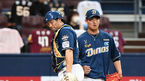[OSEN=고척, 이대선 기자] 22일 오후 서울 고척스카이돔에서 ’2021 신한은행 SOL KBO 리그' 키움 히어로즈와 NC 다이노스의 경기가 열렸다.8회말 2사 2,3루에서 키움 이지영이 우전 적시타를 치고 오태근 코치와 하이파이브를 하고