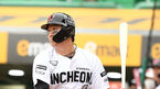 [OSEN=인천, 최규한 기자] 23일 오후 인천 SSG랜더스필드에서 ‘2021 신한은행 SOL KBO리그’ SSG 랜더스와 LG 트윈스의 경기가 열렸다.5회말 2사 2, 3루 상황 SSG 박성한의 달아나는 2타점 적시타 때 LG 포수 유강남이 원바운드 송구
