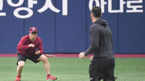 [OSEN=고척, 박준형 기자] 23일 오후 서울 고척스카이돔에서 ’2021 신한은행 SOL KBO 리그' 키움 히어로즈와 NC 다이노스의 경기가 열린다.키움 브리검과 프레이타스가 캐치볼을 마친뒤 미소 짓고 있다. / soul1014@osen.co.kr