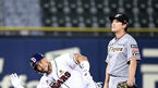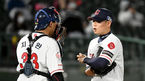 [OSEN=부산, 김성락 기자] 26일 오후 부산 사직야구장에서 '2021 신한은행 SOL KBO리그' 롯데 자이언츠와 LG 트윈스의 경기가 열렸다.6회초 2사 2루 LG 이천웅의 타석 때 롯데 포수 지시완이 포일을 범한 뒤 투수 송재영과 이야기를 나누