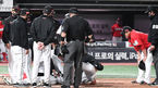 [OSEN=수원, 민경훈 기자] 26일 오후 경기도 수원시 수원 kt위즈파크에서 ‘2021 신한은행 SOL KBO 리그’ KT 위즈와 SSG 랜더스의 경기가 열렸다.7회말 1사 주자 1루 KT 김민혁이 타석에서 SSG 김태훈이 던진 볼에 헤드샷을 당한 후