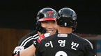 [OSEN=부산, 김성락 기자] 27일 오후 부산 사직야구장에서 '2021 신한은행 SOL KBO리그' 롯데 자이언츠와 LG 트윈스의 경기가 열렸다.2회초 종료 후 LG 김현수가 선취 적시타를 날린 이영빈과 하이파이브를 하고 있다. 21.05.27 /ksl0919@osen.