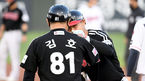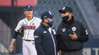 [OSEN=잠실,박준형 기자] 27일 오후 서울 잠실구장에서 2021 신한은행 SOL KBO리그 두산 베어스와 한화 이글스의 경기가 진행됐다.3회초 1사 1루 두산 곽빈의 보크 판정때 김태형 감독이 그라운드로 나서 이민호 2루심과 이야기를 나누