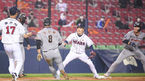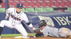 [OSEN=잠실,박준형 기자] 27일 오후 서울 잠실구장에서 2021 신한은행 SOL KBO리그 두산 베어스와 한화 이글스의 경기가 진행됐다.8회초 1사 1,3루 한화 김민하의 번트 실패때 3루 주자 협살 걸린 노시환과 3루 밟고 2루도 돌아가는 대주