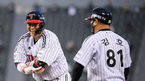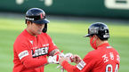 [OSEN=대전, 지형준 기자] 28일 오후 대전 한화생명이글스파크에서 ‘2021 신한은행 SOL KBO리그’ 한화 이글스와 SSG 랜더스의 경기가 열렸다.1회초 2사 1,2루에서 SSG 정의윤이 선제 1타점 적시타를 날리고 조동화 코치와 주먹을