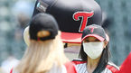 [OSEN=잠실, 민경훈 기자] 30일 오후 서울 잠실야구장에서 ‘2021 신한은행 SOL KBO리그’ LG 트윈스와 키움 히어로즈의 경기가 열렸다.경기 전 걸그룹 있지 유나가 시구를 한 후 시타를 한 류진을 바라보며 환하게 웃고 있다. 202