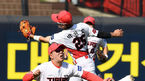 [OSEN=잠실, 민경훈 기자] 30일 오후 서울 잠실야구장에서 ‘2021 신한은행 SOL KBO리그’ LG 트윈스와 키움 히어로즈의 경기가 열렸다.7회초 1사 주자 1,3루 키움 변상권 타석에서 LG 선발 수아레즈가 유강남과 얘기를 나누며 미