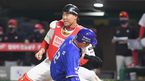 [OSEN=인천,박준형 기자] 1일 오후 인천 SSG랜더스필드에서 2021 신한은행 SOL KBO리그 SSG 랜더스와 삼성 라이온즈의 경기가 진행됐다.8회초 1사 1,3루 삼성 김지찬의 내야땅볼때 3루 주자 김민수를 홈태그아웃시킨 이재원 포수가 미소