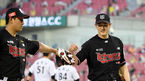 [OSEN=잠실, 곽영래 기자] 1일 서울 잠실야구장에서 ‘2021 신한은행 SOL KBO 리그’ LG 트윈스와 KT 위즈의 경기가 열렸다.3회말 2사 1루 KT 고영표가 이닝을 마친 뒤 황재균과 하이파이브를 하고 있다. 2021.06.01/youngrae@osen.co.kr
