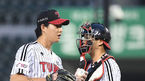 [OSEN=잠실, 곽영래 기자] 1일 서울 잠실야구장에서 ‘2021 신한은행 SOL KBO 리그’ LG 트윈스와 KT 위즈의 경기가 열렸다.4회초 2사 1,3루 엘지 이상영과 김재성이 이야기를 나누고 있다. 2021.06.01/youngrae@osen.co.kr