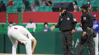 [OSEN=인천,박준형 기자] 1일 오후 인천 SSG랜더스필드에서 2021 신한은행 SOL KBO리그 SSG 랜더스와 삼성 라이온즈의 경기가 진행됐다.4회초 SSG 선발투수 폰트가 스파이크에 묻은 진흙을 털어낸뒤 가위를 박종철 구심에게 전달하고