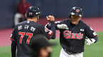 [OSEN=고척, 이대선 기자] 1일 오후 서울 고척스카이돔에서 ’2021 신한은행 SOL KBO 리그' 키움 히어로즈와 롯데 자이언츠의 경기가 열렸다.1회초 1사에서 롯데 추재현이 우월 솔로 홈런을 치고 그라운드를 돌고 있다. 2021.06.01. /su