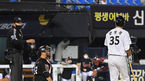 [OSEN=잠실, 곽영래 기자] 2일 서울 잠실야구장에서 ‘2021 신한은행 SOL KBO 리그’ LG 트윈스와 KT 위즈의 경기가 열렸다.8회말 무사 박기택 구심이 볼넷을 얻어낸 LG 문보경에게 출루를 지시하고 있다. 2021.06.02/youngrae@osen.co.kr