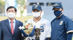 [OSEN=창원, 민경훈 기자] 2일 오후 창원 NC파크에서 ‘2021 신한은행 SOL KBO 리그’ NC 다이노스와 두산 베어스의 경기가 열렸다.경기 전 NC 박석민의 1000타점, 1500안타 달성 기념 시상식이 진행되고 있다.2021.06.02 /rumi@osen.co.kr