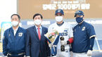 [OSEN=창원, 민경훈 기자] 2일 오후 창원 NC파크에서 ‘2021 신한은행 SOL KBO 리그’ NC 다이노스와 두산 베어스의 경기가 열렸다.경기 전 NC 이명기의 1000안타 달성 기념 시상식이 진행되고 있다.2021.06.02 /rumi@osen.co.kr