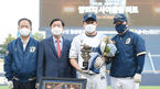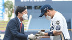 [OSEN=창원, 민경훈 기자] 2일 오후 창원 NC파크에서 ‘2021 신한은행 SOL KBO 리그’ NC 다이노스와 두산 베어스의 경기가 열렸다.사이클링 히트를 달성한 NC 양의지가 경기 전 KBO 수상을 하고 있다.2021.06.02 /rumi@osen.co.kr