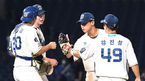 [OSEN=창원, 민경훈 기자] 2일 오후 창원 NC파크에서 ‘2021 신한은행 SOL KBO 리그’ NC 다이노스와 두산 베어스의 경기가 열렸다.9회초 두산 선두타자 양석환이 좌월 솔로홈런을 날린 후 덕아웃에서 김태형 감독과 하이파이브