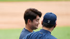 [OSEN=창원, 민경훈 기자] 2일 오후 창원 NC파크에서 ‘2021 신한은행 SOL KBO 리그’ NC 다이노스와 두산 베어스의 경기가 열릴 예정인 가운데 그라운드 훈련이 진행됐다.그라운드 위에서 NC 강인권 수석 코치가 두산 장승현을