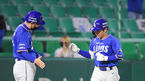 [OSEN=인천,박준형 기자] 2일 오후 인천 SSG랜더스필드에서 2021 신한은행 SOL KBO리그 SSG 랜더스와 삼성 라이온즈의 경기가 진행됐다.7회초 2사 2루 삼성 김지찬이 2점홈런을 날리고 2루 주자 김성표와 하이파이브를 하고 있다. 21.06.02