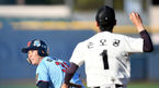 [OSEN=목동, 김성락 기자] 4일 오후 서울 양천구 목동야구장에서 ’75회 황금사자기 전국고교야구 대회’ 화순고와 휘문고의 경기가 열렸다.2회초 1사 2루 휘문고 강성현의 안타 때 2루 주자 김민찬이 런다운에 걸려 태그아