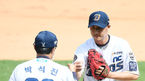 [OSEN=창원, 민경훈 기자] 4일 오후 창원 마산구장에서 KBO 퓨처스 리그 NC 다이노스와 삼성 라이온즈의 진행됐다.6회초를 마친 NC 이용찬이 덕아웃으로 들어오며 하이파이브를 하고 있다./ rumi@osen.co.kr