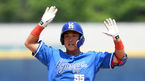[OSEN=목동, 김성락 기자] 4일 오전 서울 양천구 목동야구장에서 ’75회 황금사자기 전국고교야구 대회’ 경기고와 강릉고의 서스펜디드 경기가 열렸다.8회초 무사 1루 경기고 이성주가 1타점 적시 2루타를 날린 뒤 세레모니