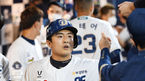 [OSEN=창원, 민경훈 기자] 4일 오후 창원 NC파크에서 ‘2021 신한은행 SOL KBO 리그’ NC 다이노스와 한화 이글스의 경기가 열렸다.6회말 1사 주자 1,2루 NC 박민우의 우익수 뒤 1타점 적시 2루타때 홈을 밟은 강진성이 덕아웃에서