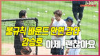 [OSEN=잠실, 곽영래 기자] 6일 서울 잠실야구장에서 ‘2021 신한은행 SOL KBO 리그’ 두산 베어스와 SSG 랜더스의 경기가 열렸다.전날 수비 도중 불규칙 바운드에 얼굴을 맞고 교체되었던 두산 강승호 SSG 선수단과 안부를 주고