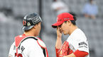 [OSEN=박준형 기자] 8일 오후 인천 SSG랜더스필드에서 2021 신한은행 SOL KBO리그 SSG 랜더스와 KT 위즈의 경기가 진행됐다.3회말 2사 만루 KT 장성우 포수가 마운드에 올라 고영표 투수와 이야기를 나누고 있다. 21.06.08 / soul1014@osen.co.kr