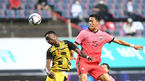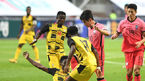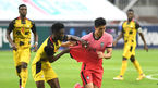 [OSEN=제주, 이대선 기자] 김학범 감독이 이끄는 대한민국 올림픽 대표팀이 12일 오후 제주월드컵경기장에서 가나 U-24 대표팀과 평가전을 가졌다.전반 대한민국 김재우가 상대 선수와 공중볼 다툼을 하고 있다. /sunday@osen.co.kr
