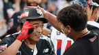 [OSEN=수원 , 곽영래 기자] 12일 오후 수원 KT위즈파크에서 '2021 신한은행 SOL KBO리그' KT 위즈와 한화 이글스의 경기가 열렸다.7회말 1사 1,2루 KT 김태훈이 스리런 홈런을 때린 뒤 동료들에게 축하받고 있다. 2021.06.12 /youngrae@osen.co.kr