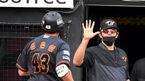 [OSEN=수원 , 곽영래 기자] 12일 오후 수원 KT위즈파크에서 '2021 신한은행 SOL KBO리그' KT 위즈와 한화 이글스의 경기가 열렸다.5회초 1사 한화 정은원이 솔로 홈런을 때린 뒤 수베로 감독과 하이파이브를 하고 있다. 2021.06.12 /youngrae@ose