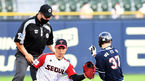 [OSEN=잠실, 최규한 기자] 13일 오후 서울 잠실야구장에서 ‘2021 신한은행 SOL KBO리그’ LG 트윈스와 두산 베어스의 경기가 열렸다.4회말 1사 만루 상황 두산 선발 곽빈이 LG 홍창기에게 몸 맞는 공을 내주며 밀어내기 실점을 한