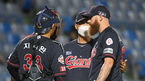 [OSEN=대전,박준형 기자] 15일 오후 대전 한화생명이글스파크에서 2021 신한은행 SOL KBO리그 한화 이글스와 롯데 자이언츠의 경기가 진행됐다.5회말 무사 1,3루 롯데 선발투수 스트레일리가 마운드 방문한 이용훈 투수 코치와 이야