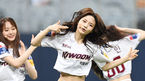 [OSEN=대전,박준형 기자] 15일 오후 대전 한화생명이글스파크에서 2021 신한은행 SOL KBO리그 한화 이글스와 롯데 자이언츠의 경기가 진행됐다.1회초 이닝종료 후 러블리즈 미주가 응원단상에서 치어리딩을 마치고 퇴장하고 있다. 21