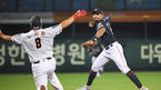 [OSEN=대전,박준형 기자] 15일 오후 대전 한화생명이글스파크에서 2021 신한은행 SOL KBO리그 한화 이글스와 롯데 자이언츠의 경기가 진행됐다.3회말 1사 1루 한화 이성열의 병살타때 롯데 마차도 2루수가 1루 주자 노시환을 포스아웃