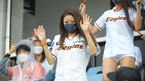 [OSEN=대전,박준형 기자] 15일 오후 대전 한화생명이글스파크에서 2021 신한은행 SOL KBO리그 한화 이글스와 롯데 자이언츠의 경기가 진행됐다.1회초 러블리즈 미주가 응원단상에서 치어리더와 함께 응원을 펼치고 있다. 21.06.15 / soul