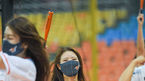[OSEN=대전,박준형 기자] 15일 오후 대전 한화생명이글스파크에서 2021 신한은행 SOL KBO리그 한화 이글스와 롯데 자이언츠의 경기가 진행됐다.1회초 러블리즈 미주가 응원단상으로 이동하고 있다. 21.06.15 / soul1014@osen.co.kr